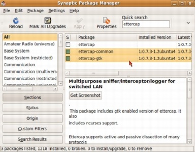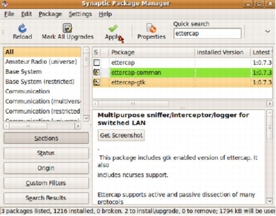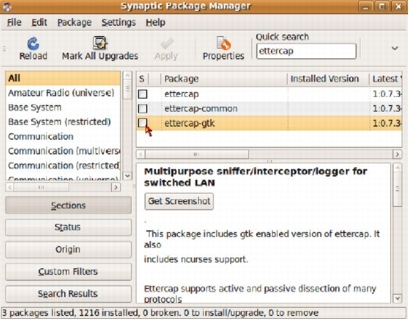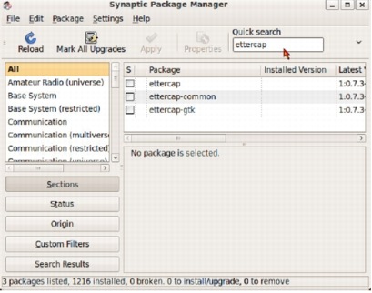 packETH Installation via Synaptic Package Manager