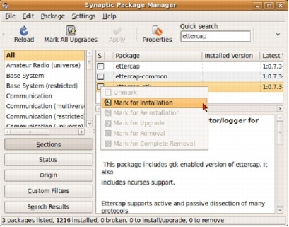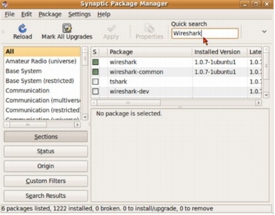 Wireshark Installation via Synaptic Package Manager