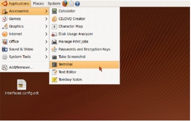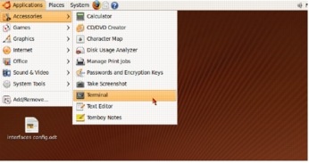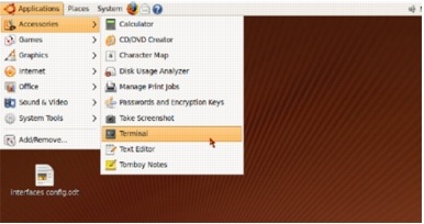 We are going to use the terminal shell to modify the "/etc/etter.conf" file. Select "Applications>Accessories>Terminal " to open a terminal window (Figure 71).