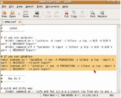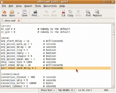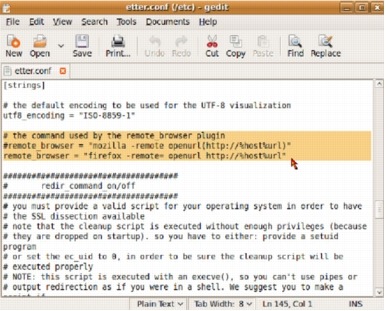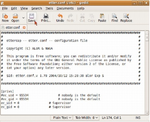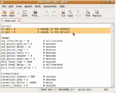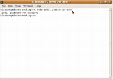 When the terminal window opens, type "sudo gedit /etc/etter.conf"