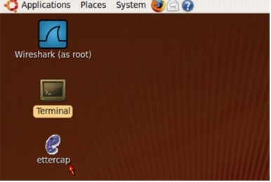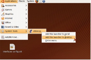 Ettercap can be launched from "Applications>System Tools" or you can right click on "ettercap" from "System Tools" and install a launcher to the desktop (Figure 78).