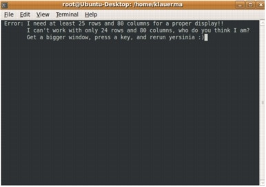 Yersinia must be launched from a terminal window. Click on "Applications>Accessories>Terminal" to open a terminal window (Figure 82).